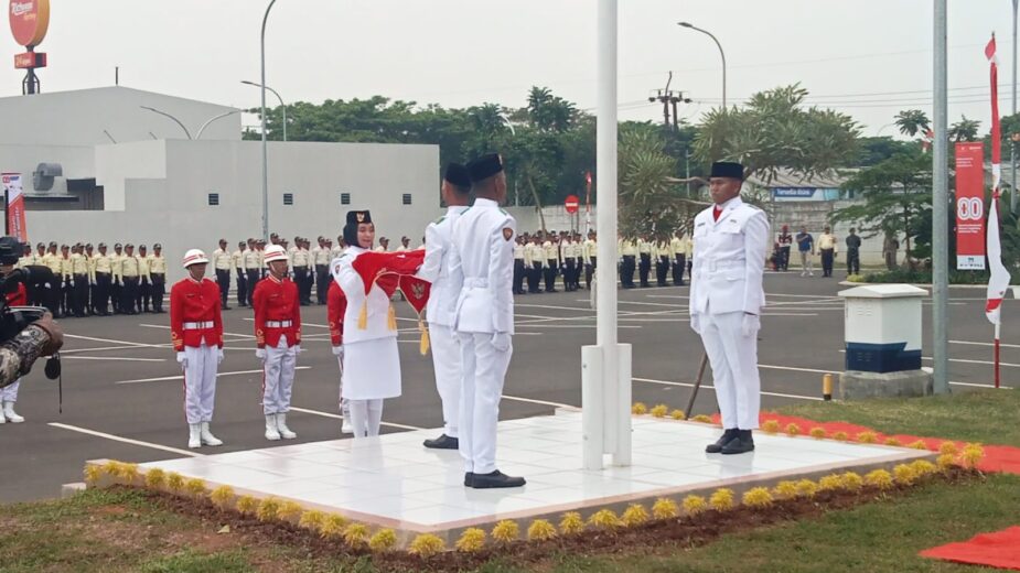 KABUPATEN TANGERANG – Memperingati Hari Ulang Tahun (HUT) ke-80 Republik Indonesia, Manajemen Suvarna Sutera menggelar upacara bendera di lapangan Plavor Bliss Suvarna Sutera Sindang Jaya Kabupaten Tangerang, Minggu (17/8/2025).